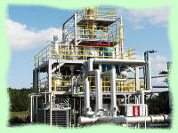 | 本装置は、プラスチックス(廃プラスチックスを含む)を溶融処理油化するものであり、処理するプロセスは溶媒油(鉱物油)を媒体とした湿式を採用し、本来熱伝導率の良好でないプラスチックスを間接的な熱風を利用した加熱方法により、段階的な温度管理、及び各機器内液レベルを計装制御系で自動検出する事により、これらを互いに連動させ制御盤での集中制御による一括管理をすることで油化回収率及び安全性を向上させたものです。 |