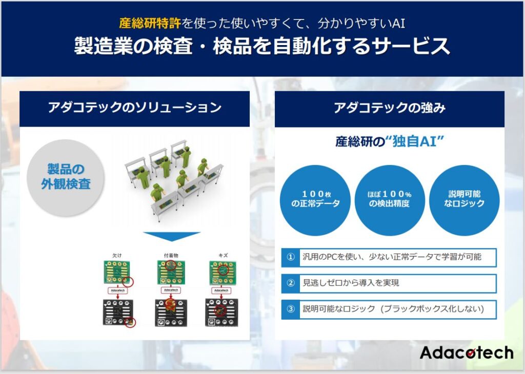 独自の画像解析AIソフトウェアを用いて、製造業の検査・検品を自動化するサービスを提供しています。